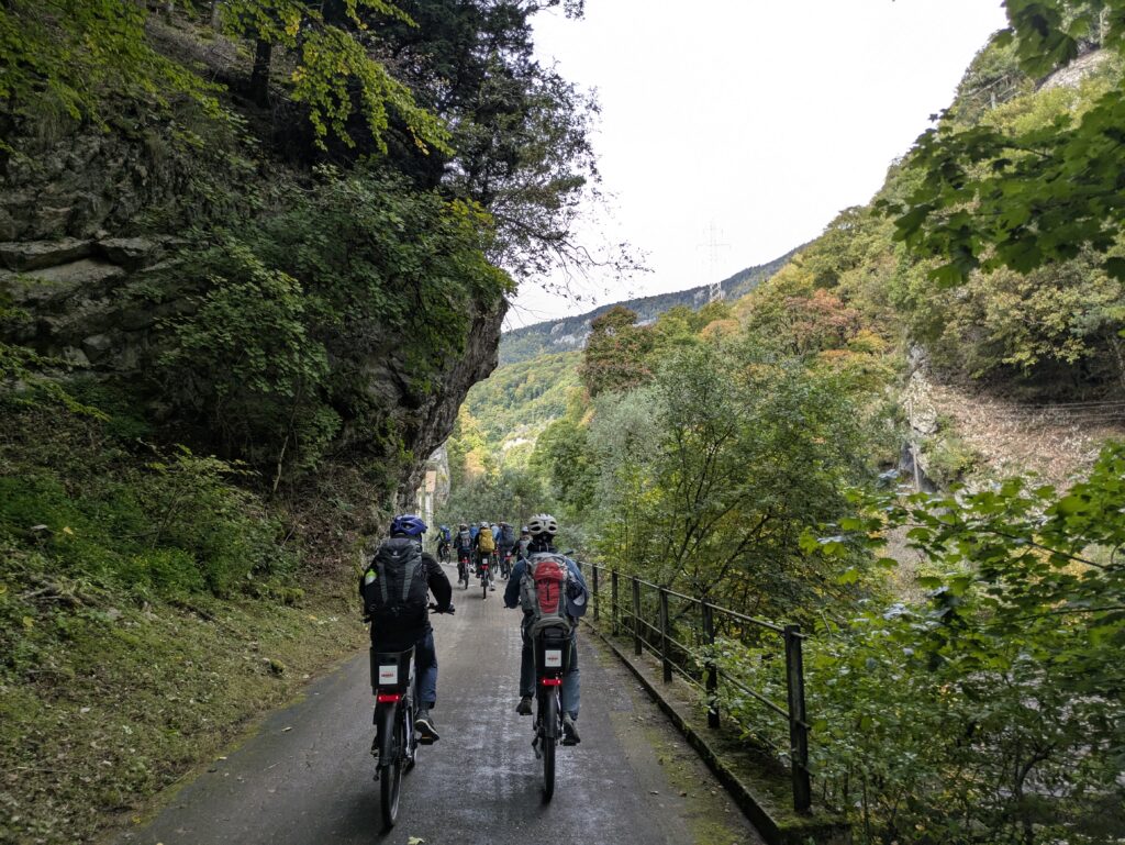Zur Belohnung wartete in Couvet ein im Asphalt gekochter Schinken, der mindestens so spektakulär schmeckte, wie er klang. Gestärkt tauchten wir danach in die geheimnisvolle Unterwelt ein, in einen kleinen Teil des insgesamt 100 Kilometer langen Stollensystems, in dem bis in die 1980er Jahre Asphalt abgebaut und in alle Welt exportiert wurde. Wir erfuhren nicht nur, wie die Mineure damals gearbeitet und gelebt hatten, sondern auch einiges über die etwas speziellen Weltansichten unseres Führers.